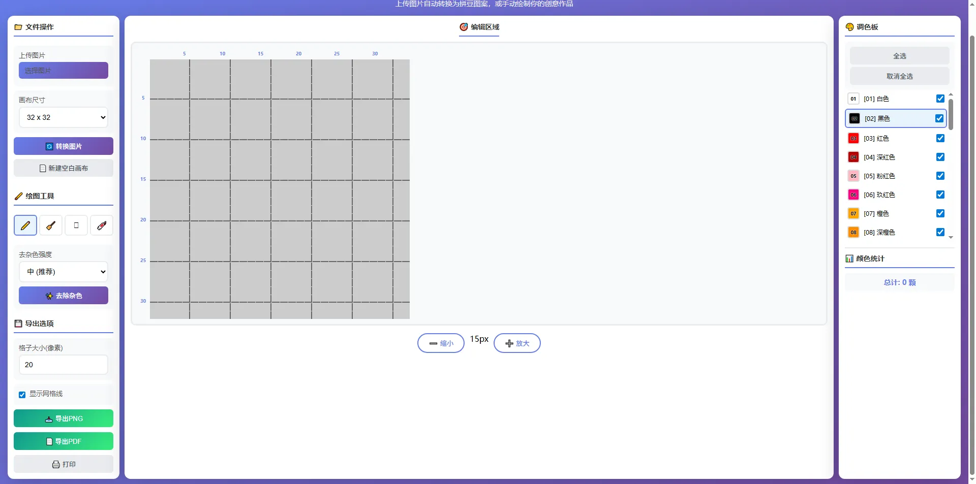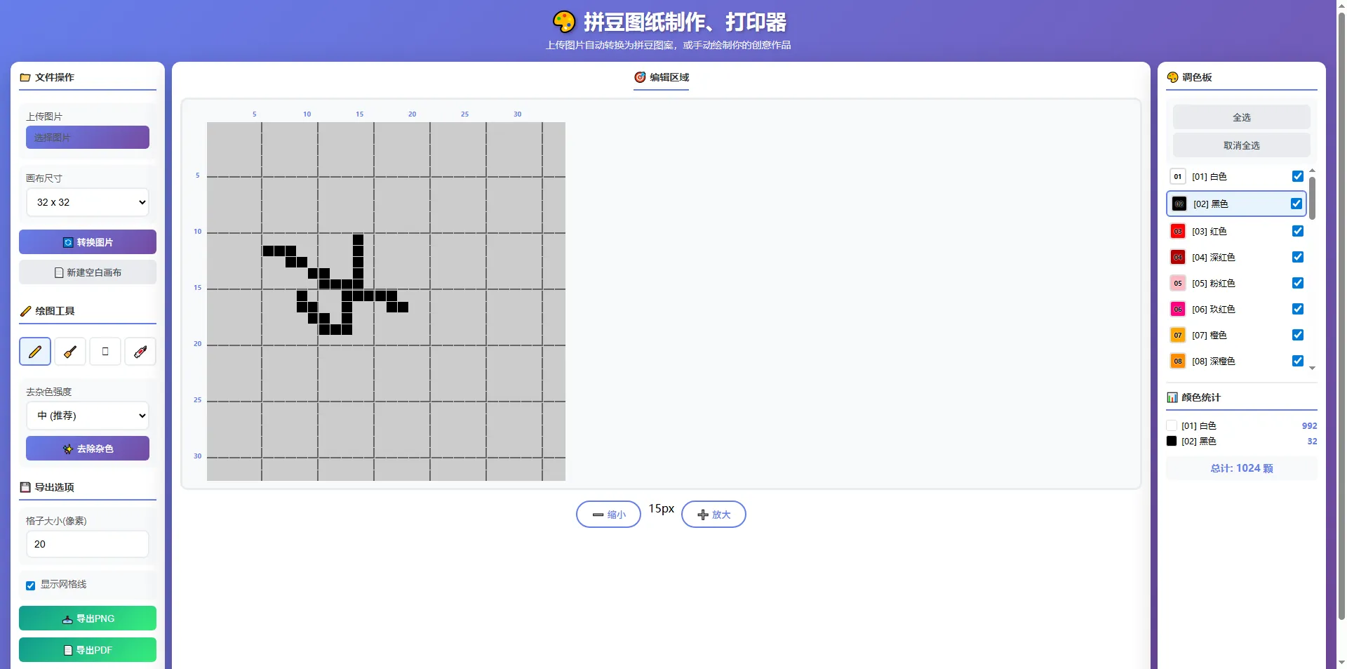 - 图片一键转换:支持将普通图片一键转换为拼豆图纸,自动处理像素化效果
