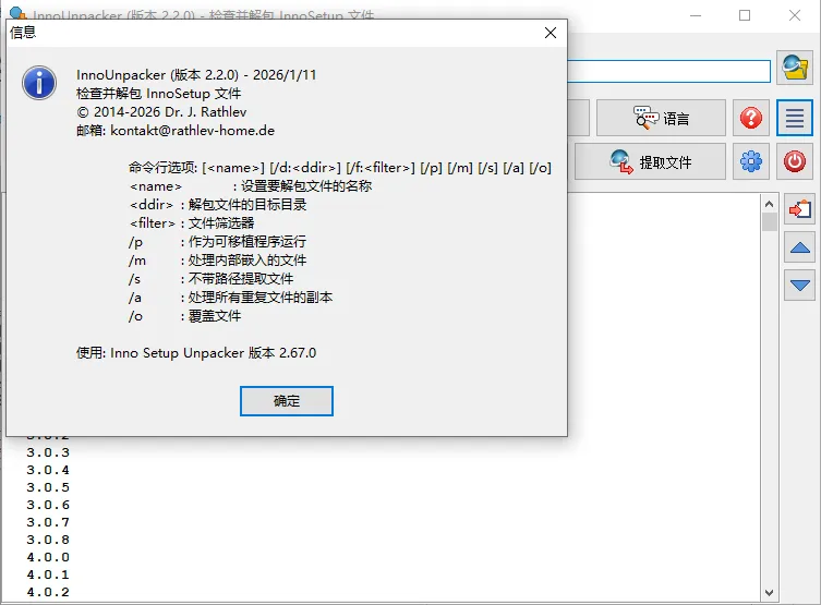 - 文件提取:从Inno Setup安装包中提取所需文件,无需完整安装软件