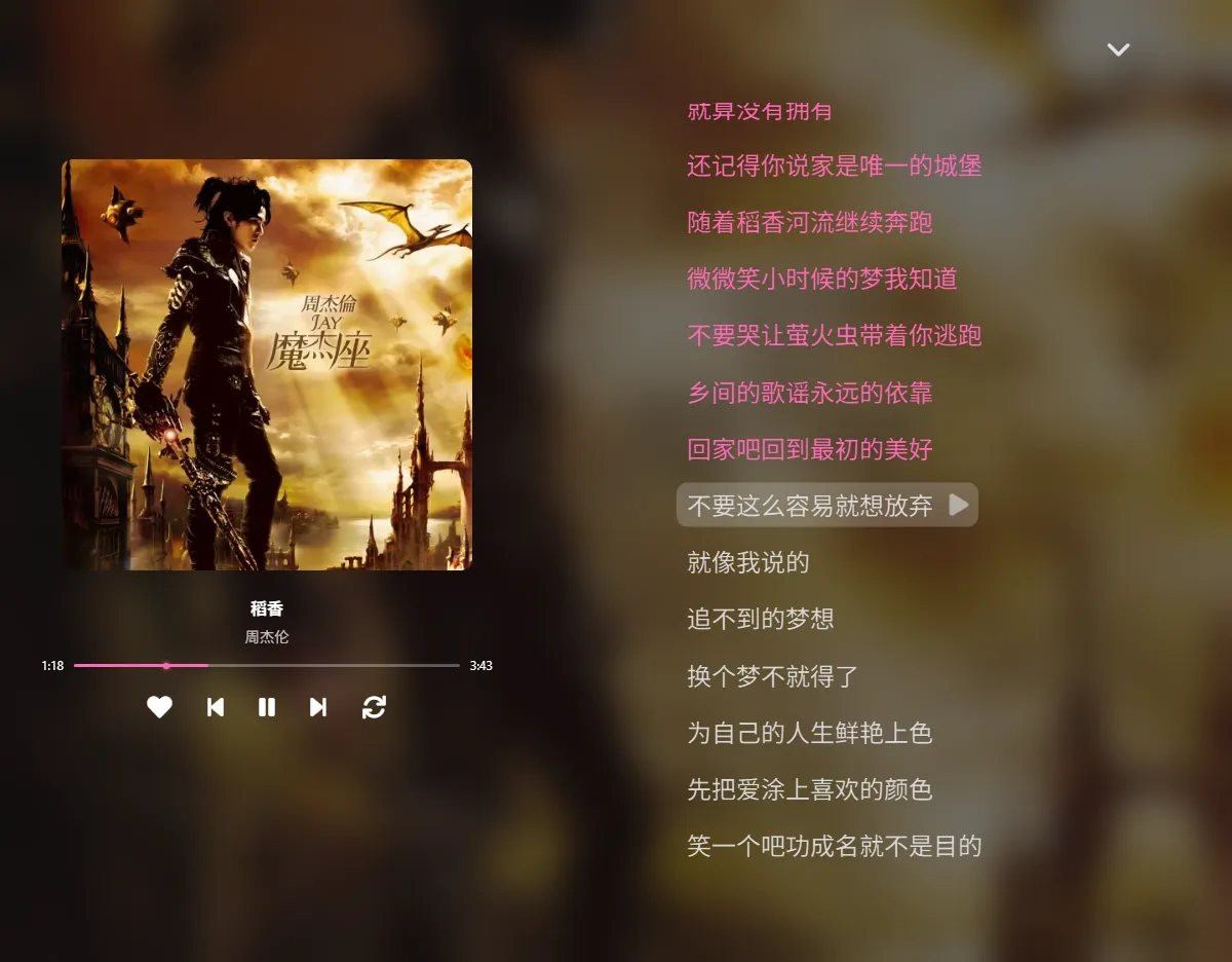 - 歌词显示功能:支持歌词实时显示,同步播放进度,提升音乐收听体验