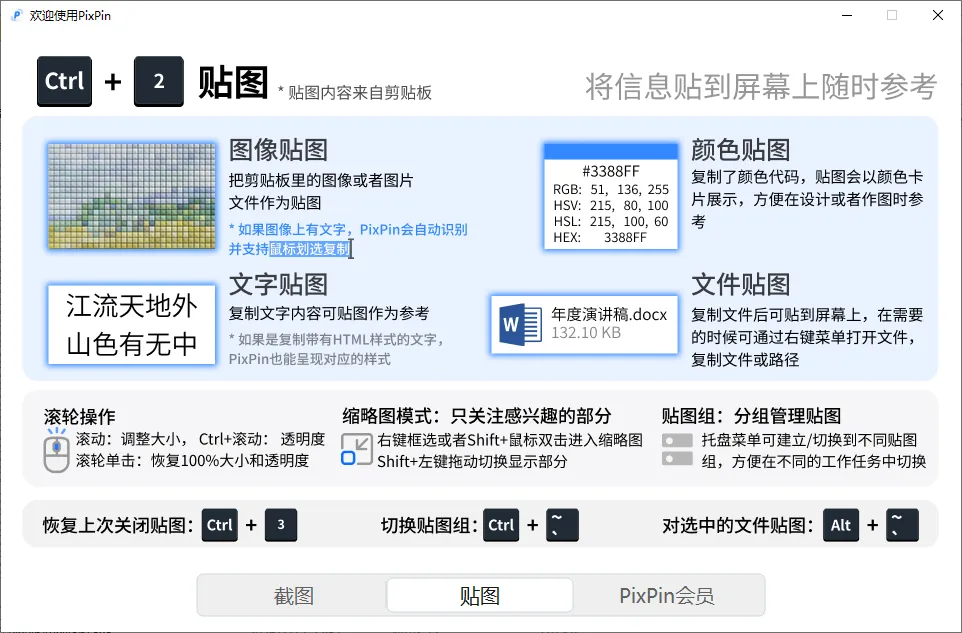 - 贴图功能:支持将截图贴在屏幕上,方便对比和参考,提升工作效率
